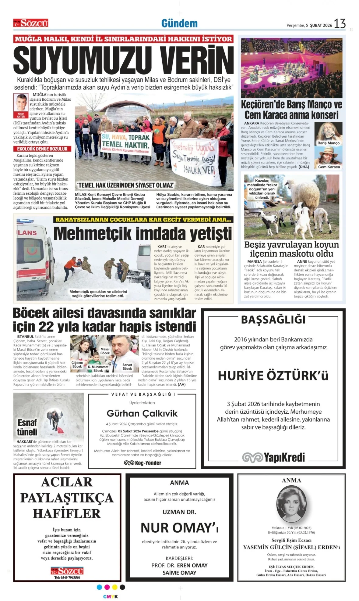 05 Şubat 2026 Perşembe SÖZCÜ Vefat (Ölüm) – Başsağlığı – Anma – Teşekkür İlanları Gönderildi: 6 Şubat 2026 - Venüs Reklam Gönderildi: Genel.
