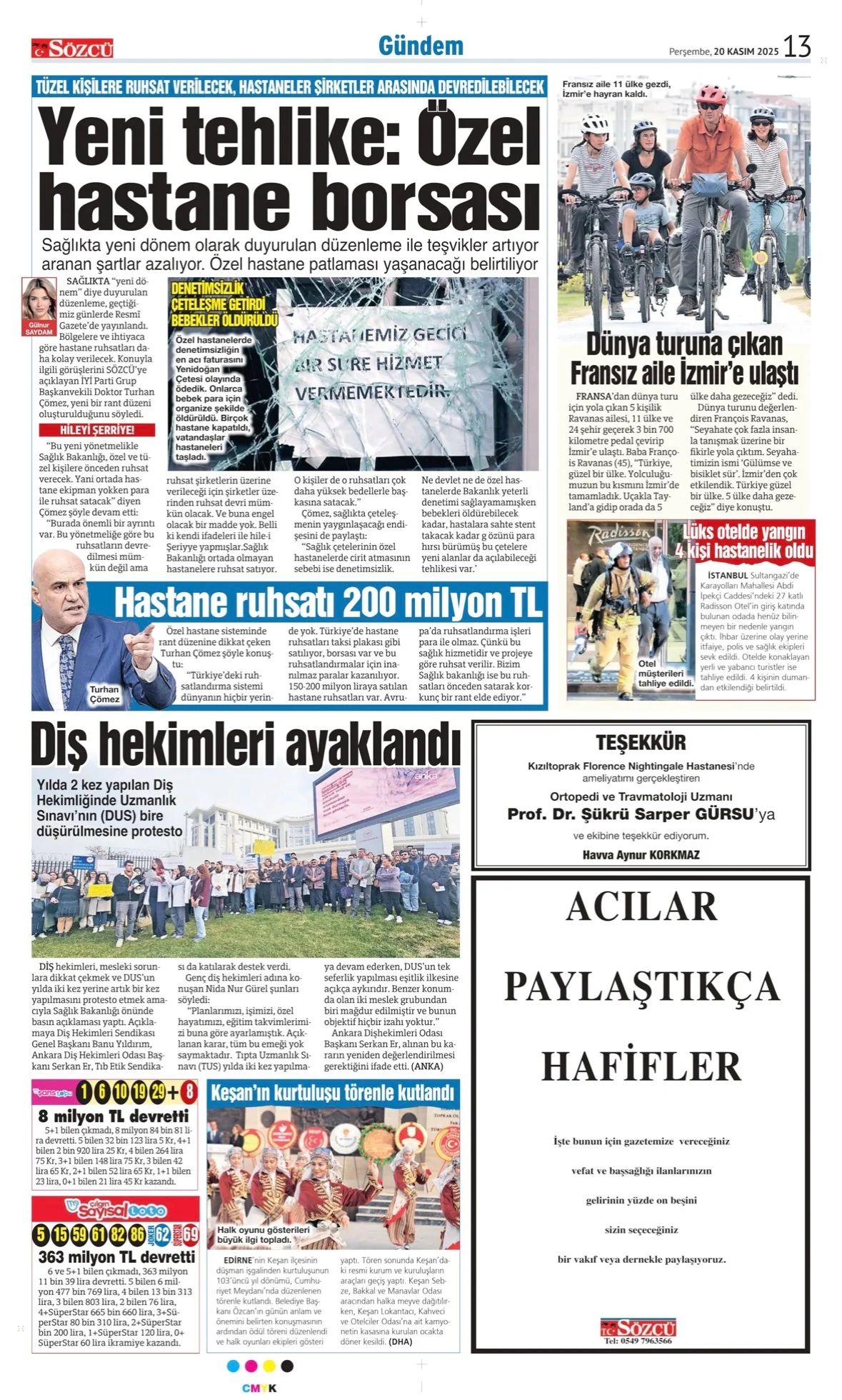 20 Kasım 2025 Perşembe SÖZCÜ Vefat (Ölüm) – Başsağlığı – Anma – Teşekkür İlanları Gönderildi: 25 Kasım 2025 - Venüs Reklam Gönderildi: Genel.