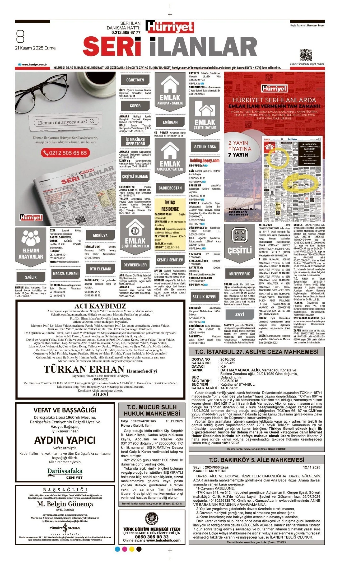 21 Kasım 2025 Cuma HÜRRİYET Vefat (Ölüm) – Başsağlığı – Anma – Teşekkür İlanları Gönderildi: 25 Kasım 2025 - Venüs Reklam Gönderildi: Genel.