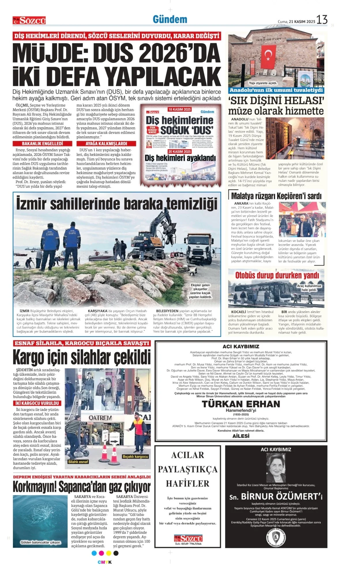 21 Kasım 2025 Cuma SÖZCÜ Vefat (Ölüm) – Başsağlığı – Anma – Teşekkür İlanları Gönderildi: 25 Kasım 2025 - Venüs Reklam Gönderildi: Genel.